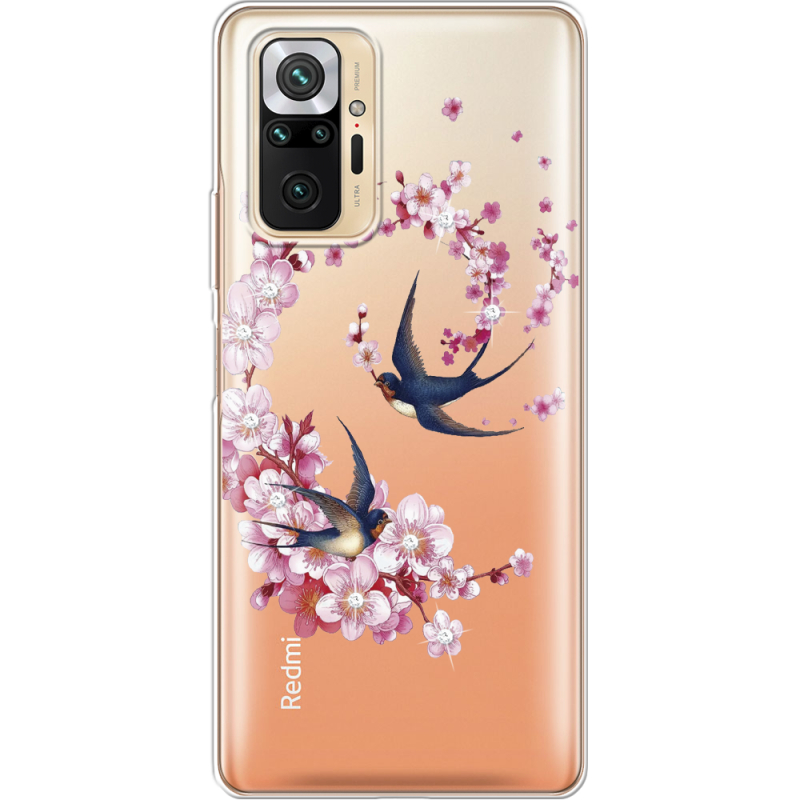 Чехол со стразами Xiaomi Redmi Note 10 Pro Swallows and Bloom