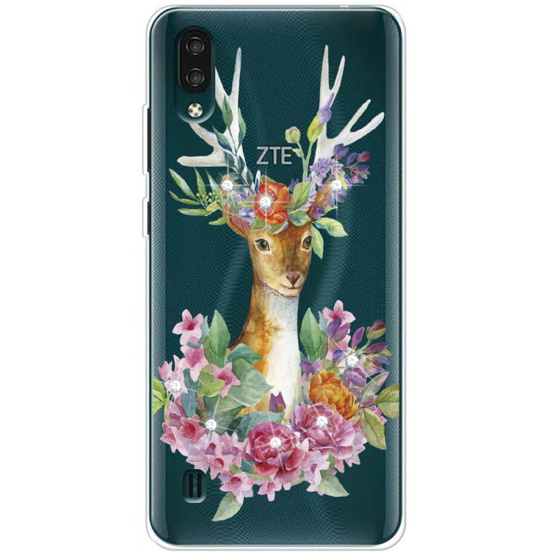 Чехол со стразами ZTE Blade A51 Lite Deer with flowers