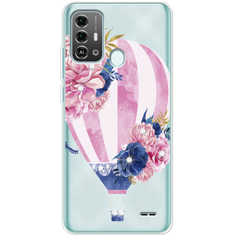 Чехол со стразами ZTE Blade A53 Pro Pink Air Baloon