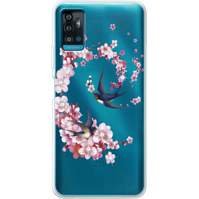 Чехол со стразами ZTE Blade A71 Swallows and Bloom