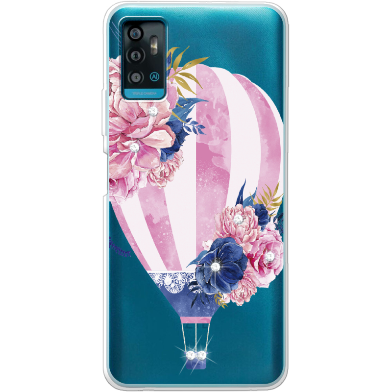Чехол со стразами ZTE Blade A71 Pink Air Baloon