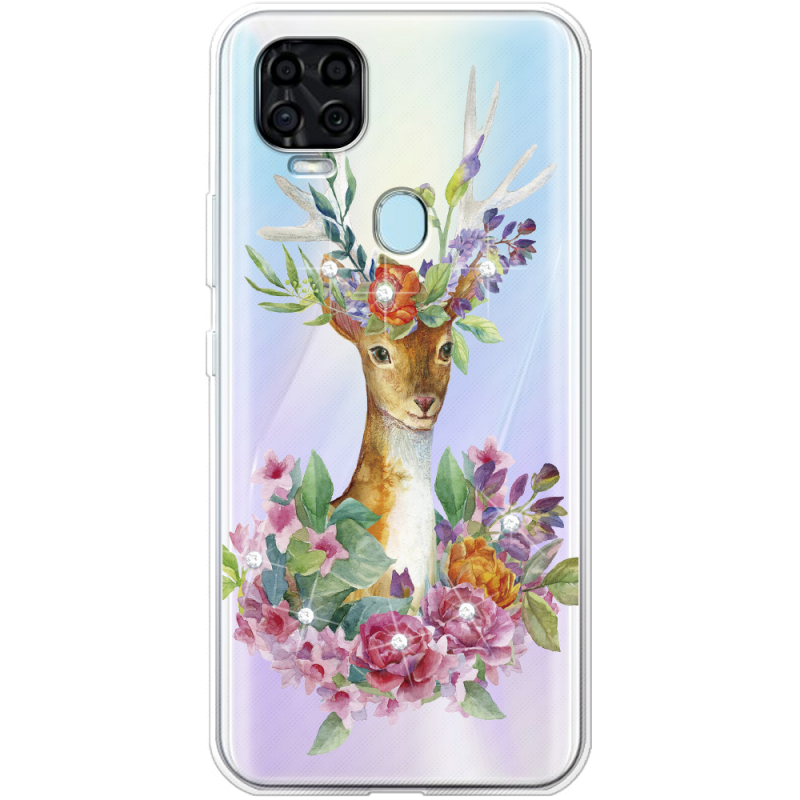 Чехол со стразами ZTE Blade V2020 Deer with flowers
