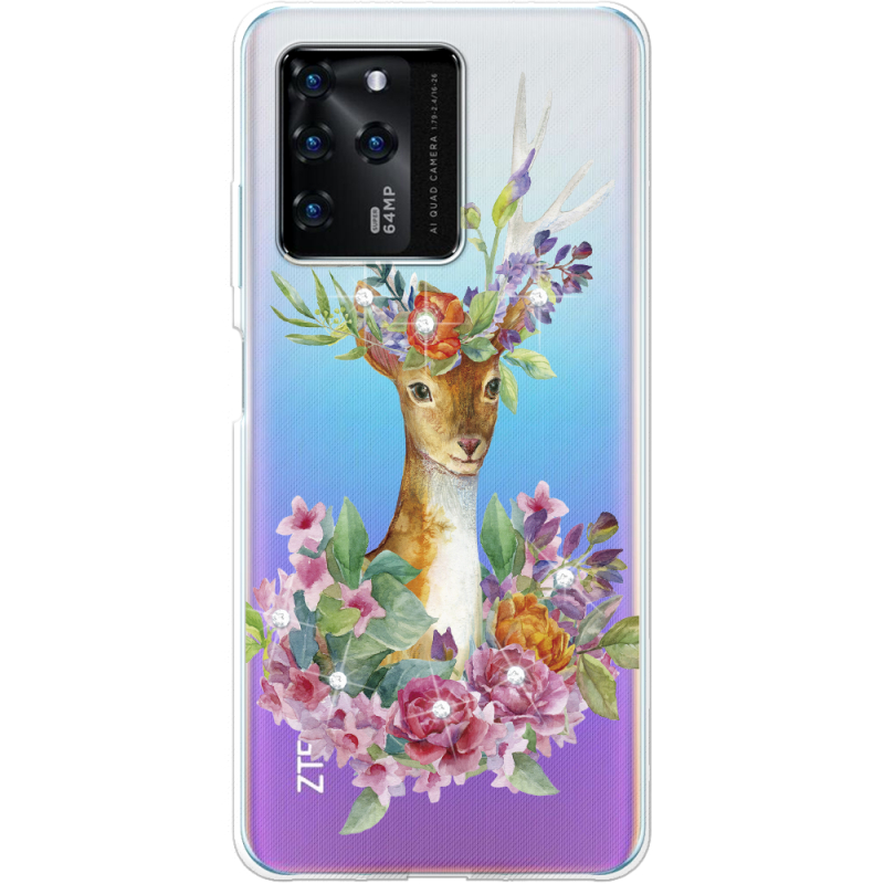 Чехол со стразами ZTE Blade V30 Deer with flowers
