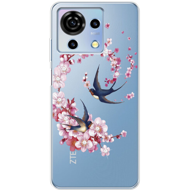 Чехол со стразами ZTE Blade V50 Vita Swallows and Bloom