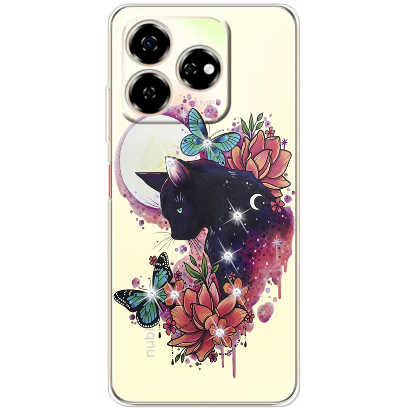 Чехол со стразами Nubia V60 Cat in Flowers