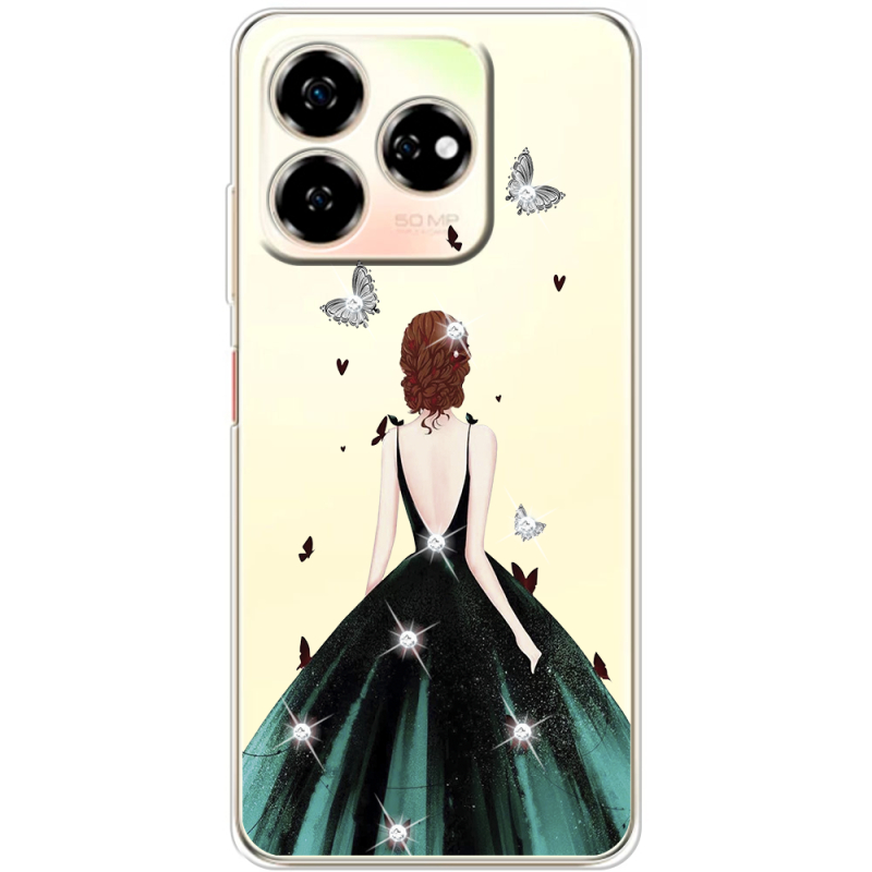 Чехол со стразами Nubia V60 Girl in the green dress