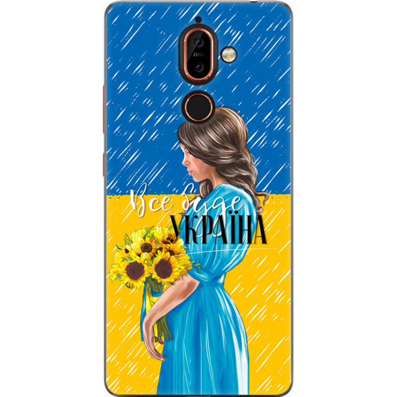 Чехол U-print Nokia 7 Plus Україна дівчина з букетом