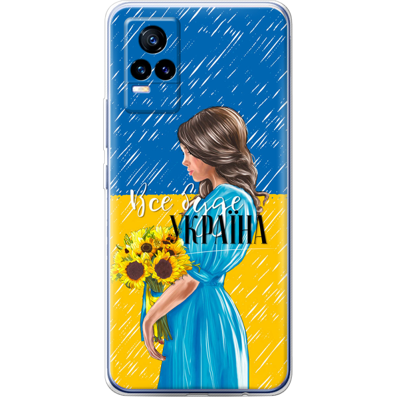 Чехол Uprint Vivo V21E Україна дівчина з букетом