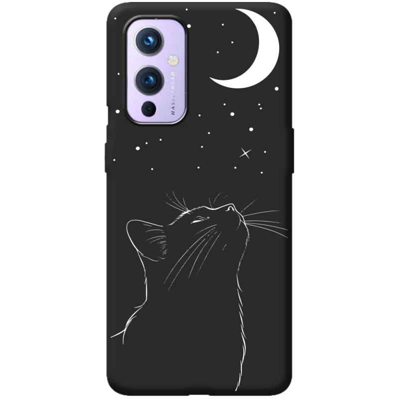 Черный чехол BoxFace OnePlus 9 Місячний кіт