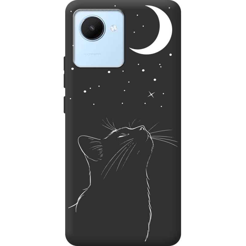 Черный чехол BoxFace Realme C30 Місячний кіт