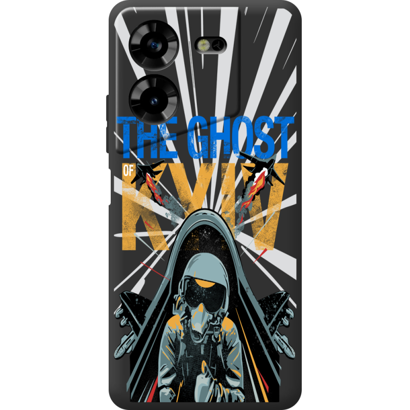 Черный чехол BoxFace Tecno POVA 5 Привид Києва в дії