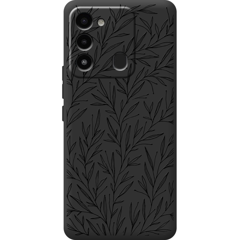 Черный чехол BoxFace Tecno Spark 8C Leaves