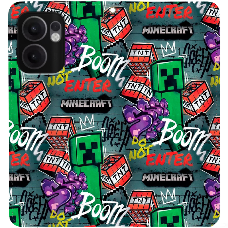 Чохол-книжка BoxFace для OPPO Reno 13 F Minecraft Creeper Boom