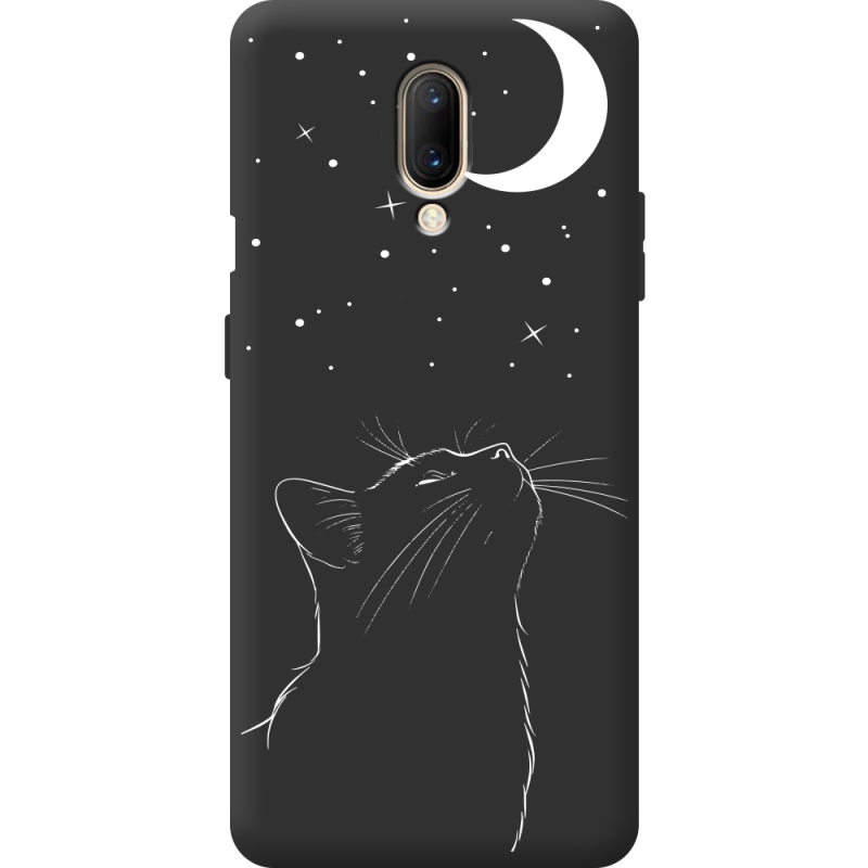 Чорний чохол BoxFace OnePlus 7 Місячний кіт