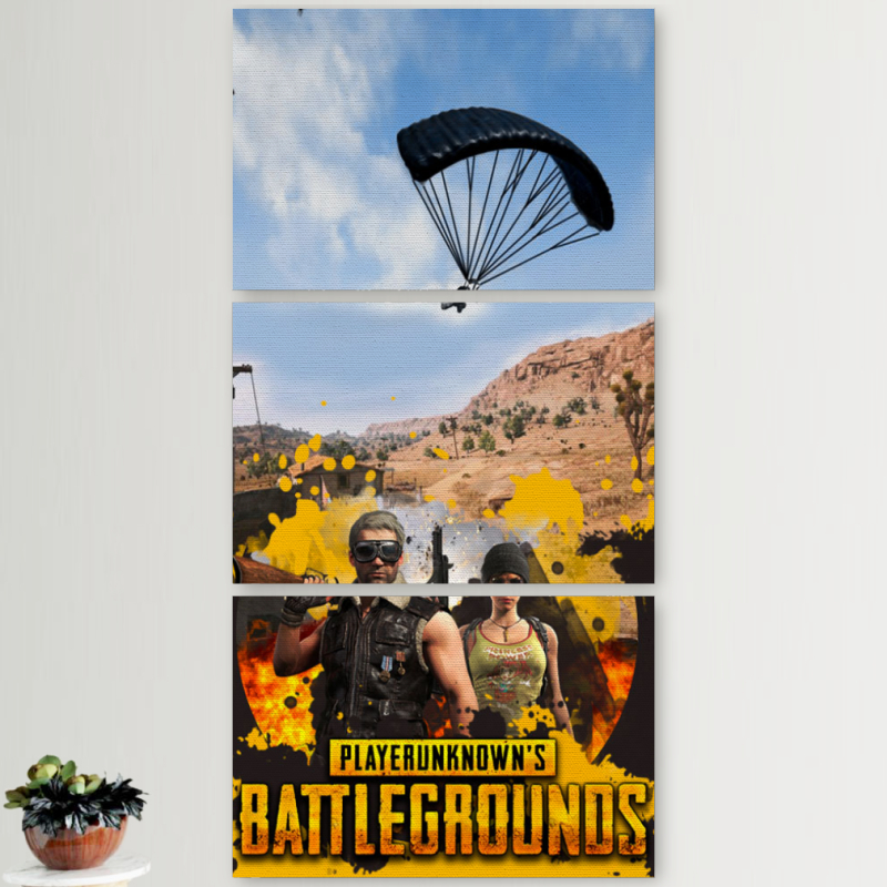 Модульные картины горизонтальные 60 на 40 3шт Pubg parachute