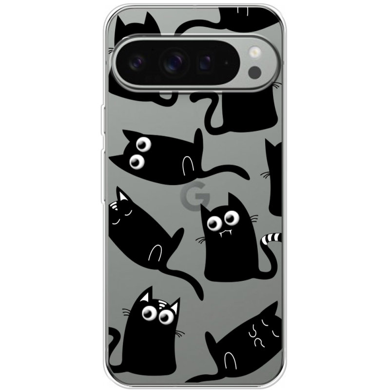 Прозорий чохол BoxFace Google Pixel 10 Pro XL с 3D-глазками Black Kitty