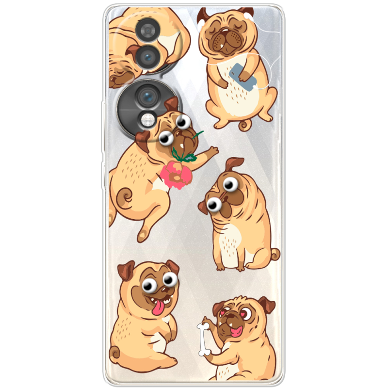 Прозорий чохол BoxFace Honor 70 с 3D-глазками Pug
