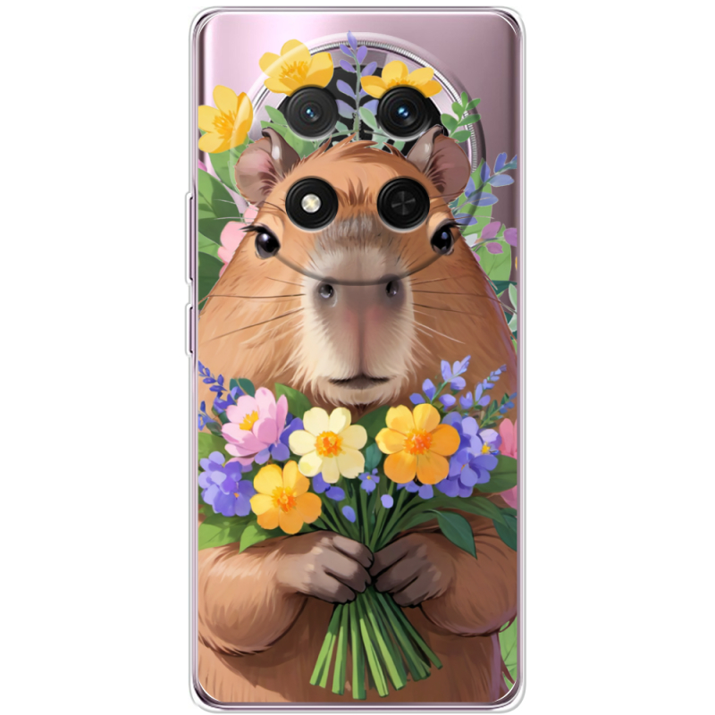 Прозорий чохол BoxFace Honor X9c Капибара з квітами