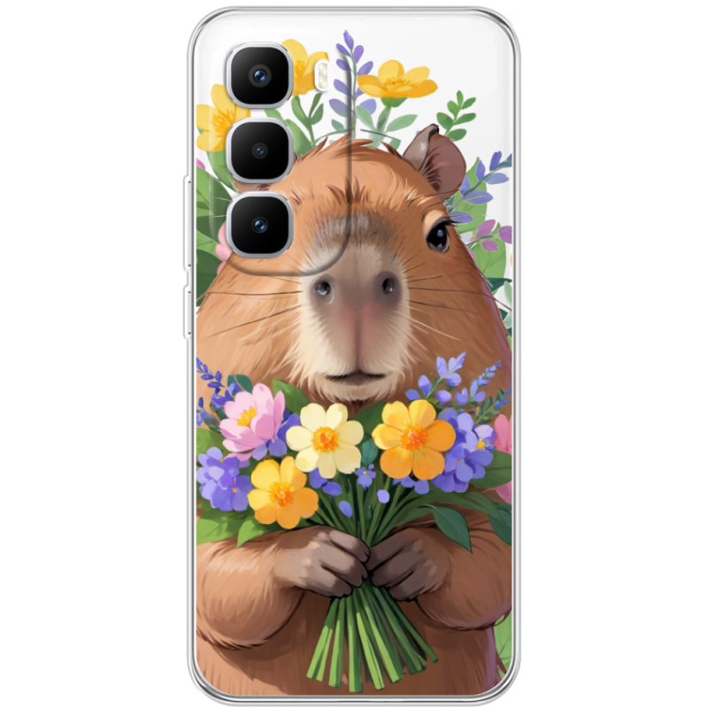 Прозорий чохол BoxFace Infinix Hot 60 Pro Plus Капибара з квітами