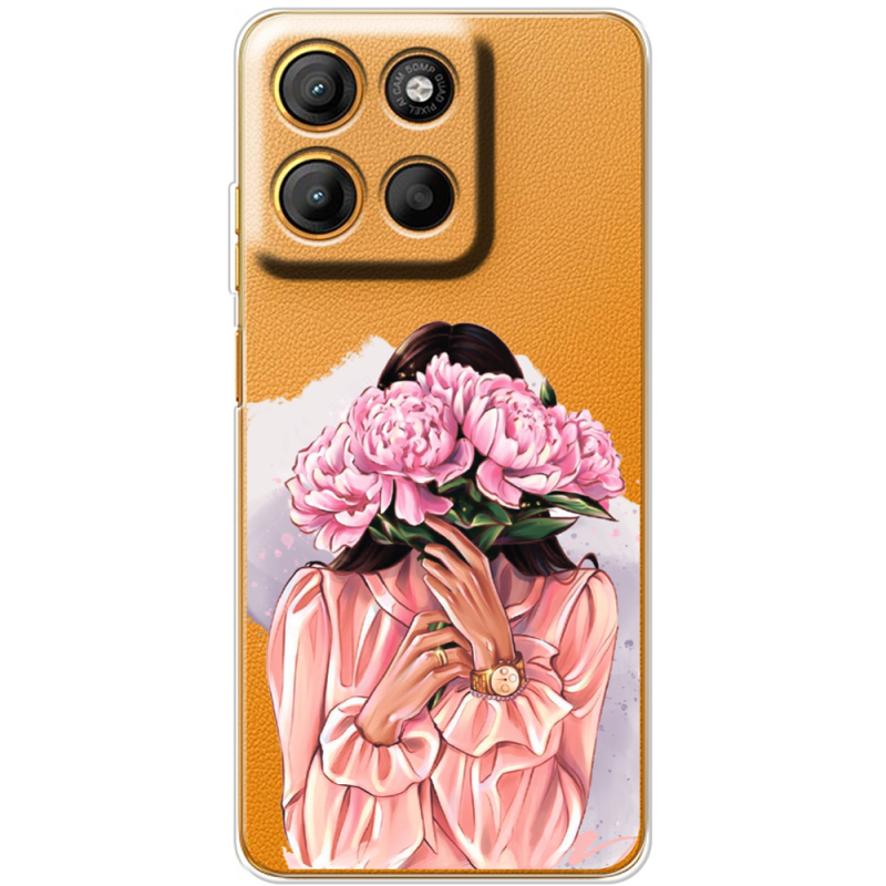 Прозорий чохол BoxFace Motorola G17 Power Девушка с Пионами