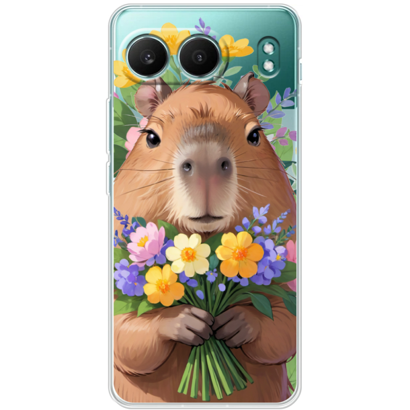 Прозорий чохол BoxFace OnePlus Nord 4 Капибара з квітами