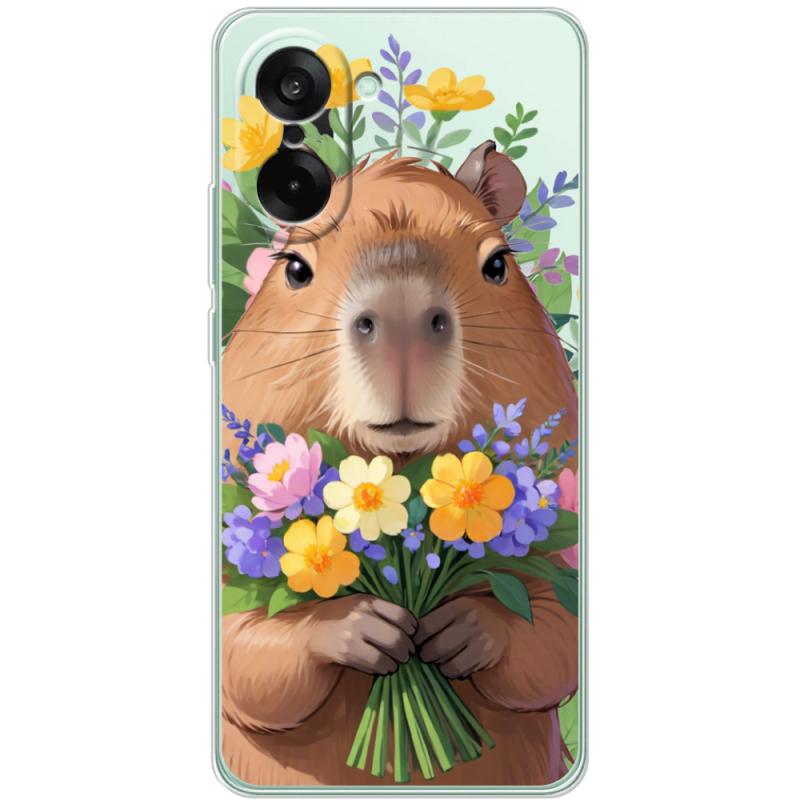 Прозорий чохол BoxFace OnePlus Nord CE5 Капибара з квітами