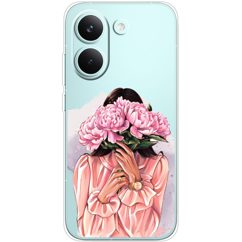 Прозорий чохол BoxFace Poco X8 Pro Девушка с Пионами