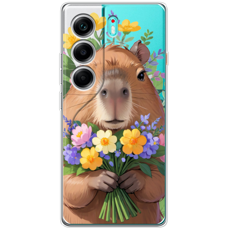 Прозорий чохол BoxFace Tecno Camon 40 Капибара з квітами