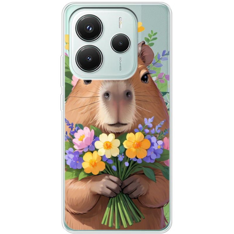 Прозорий чохол BoxFace Xiaomi Redmi Note 14 5G Капибара з квітами