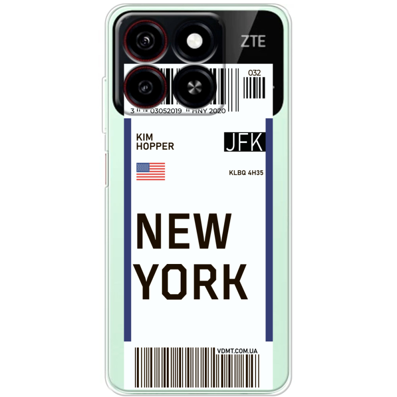 Прозорий чохол BoxFace ZTE Blade A55 Ticket New York