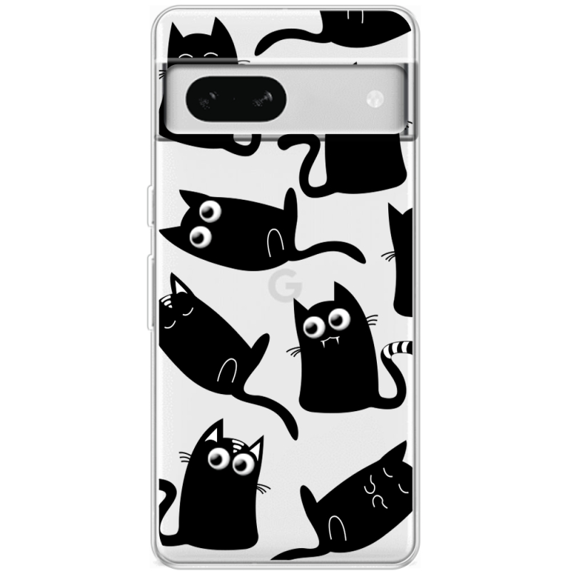 Прозрачный чехол BoxFace Google Pixel 7A с 3D-глазками Black Kitty
