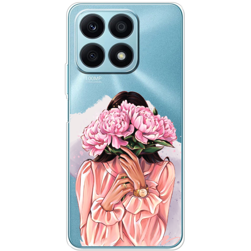 Прозрачный чехол BoxFace Honor X8a Девушка с Пионами