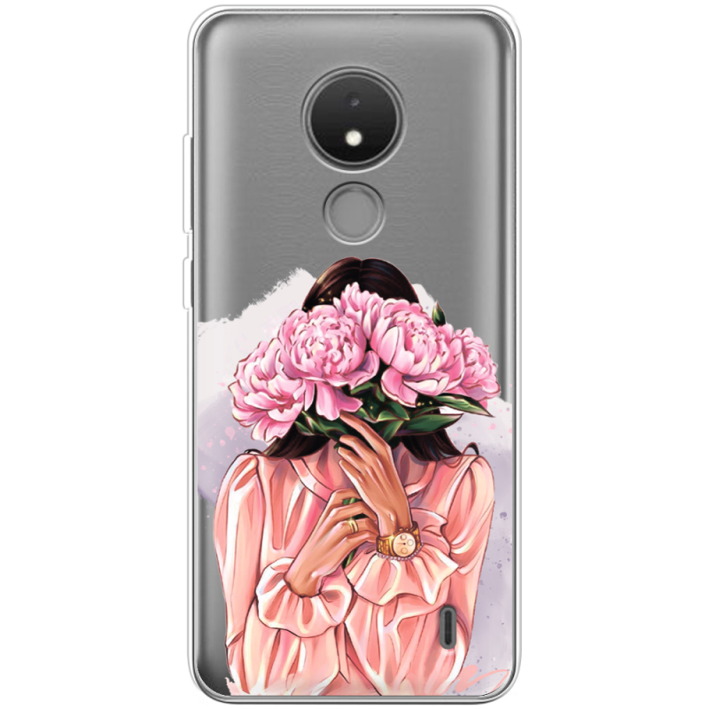 Прозрачный чехол BoxFace Nokia C21 Девушка с Пионами