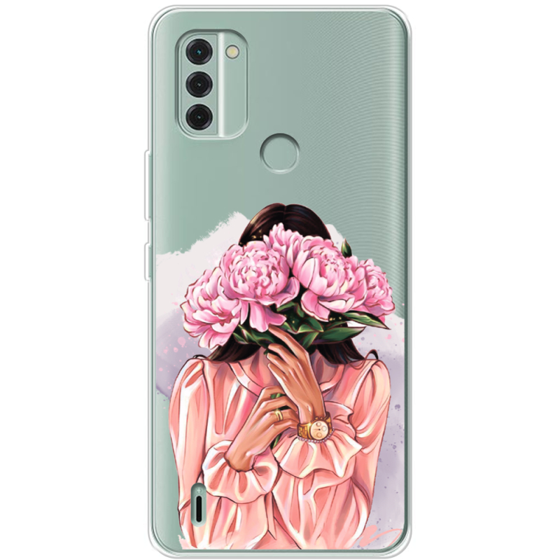 Прозрачный чехол BoxFace Nokia C31 Девушка с Пионами