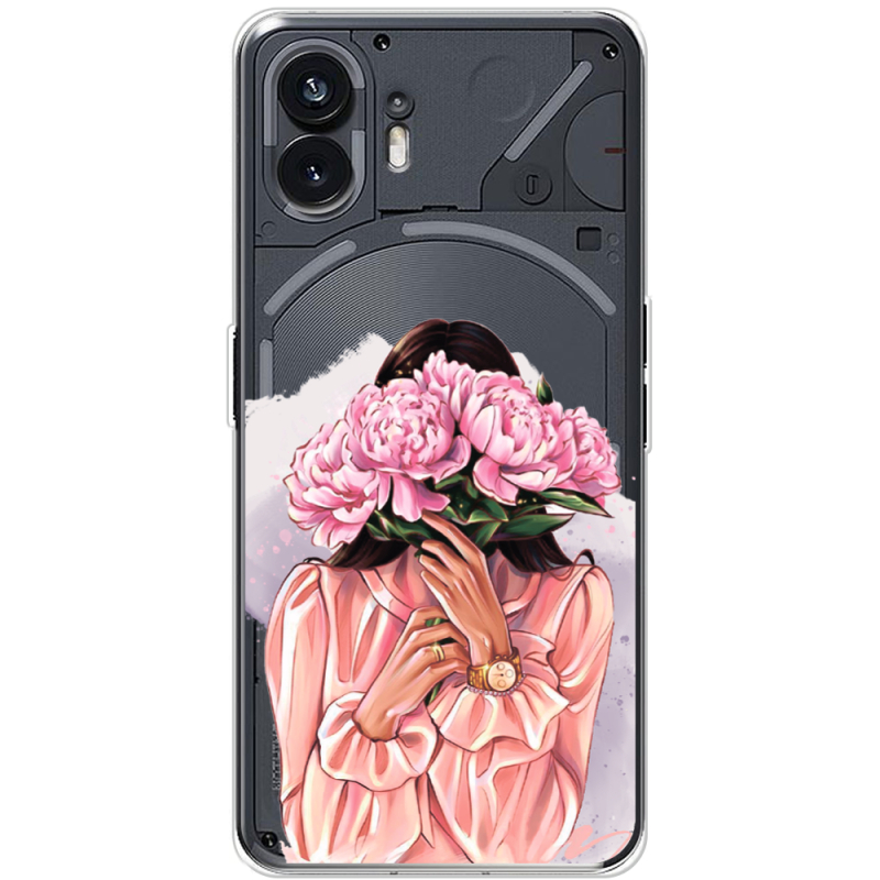 Прозрачный чехол BoxFace Nothing Phone (2) Девушка с Пионами