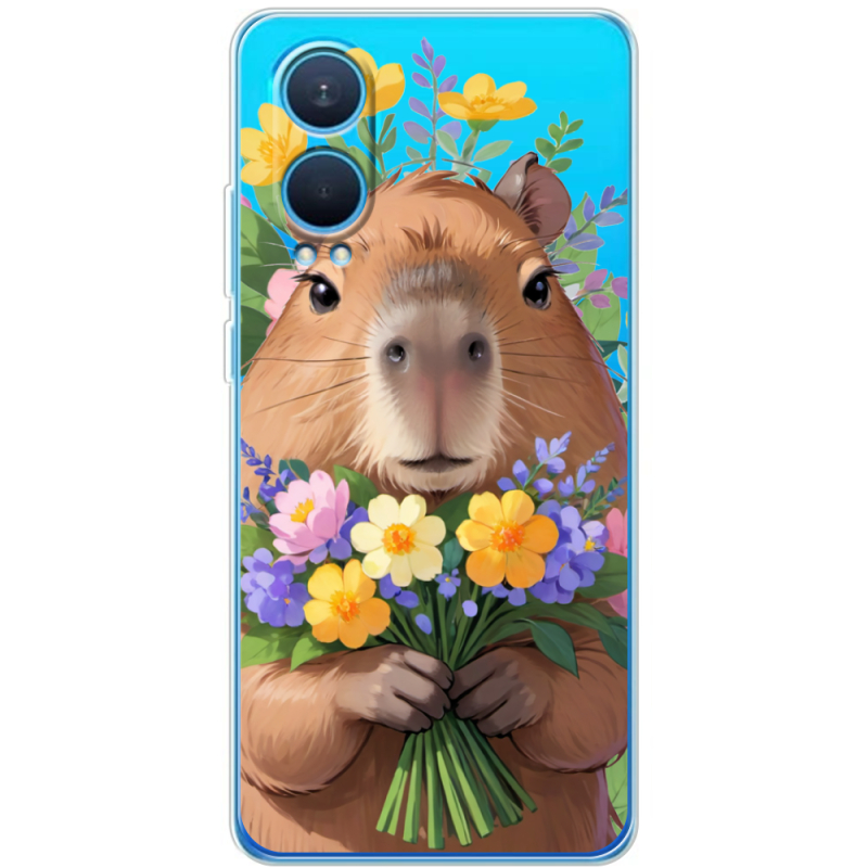 Прозрачный чехол BoxFace OnePlus Nord CE 4 Lite 5G Капибара з квітами