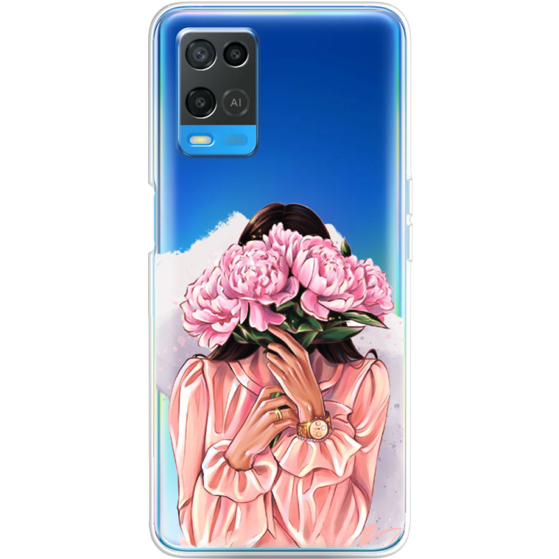 Прозрачный чехол BoxFace OPPO A54 Девушка с Пионами