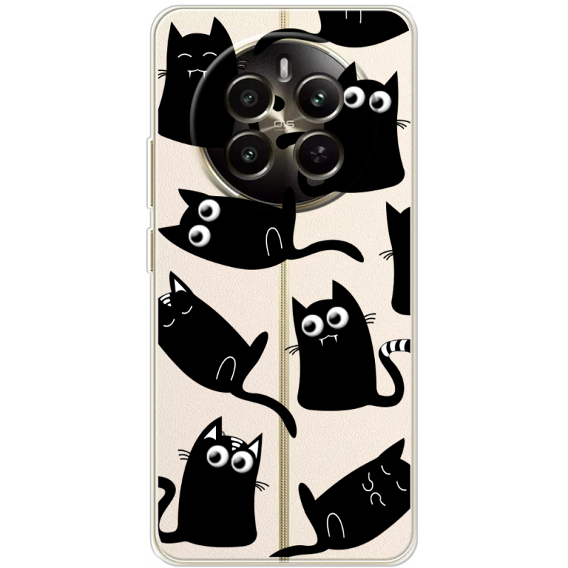 Прозрачный чехол BoxFace Realme 12 Plus 5G с 3D-глазками Black Kitty