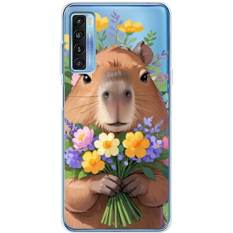 Прозрачный чехол BoxFace TCL 20L Капибара з квітами