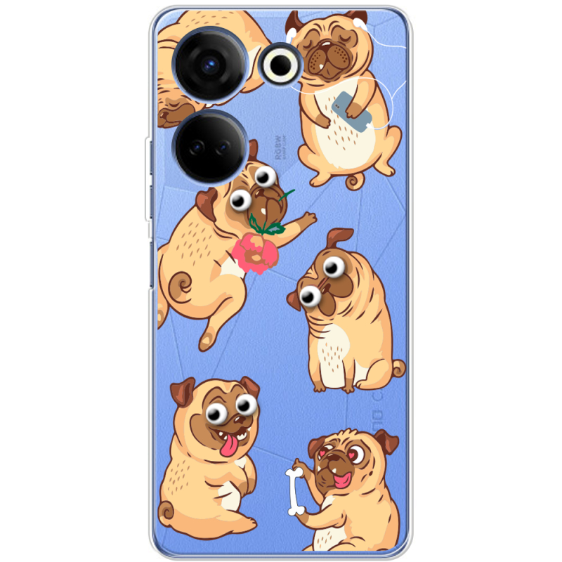Прозрачный чехол BoxFace Tecno Camon 20 Pro 4G с 3D-глазками Pug