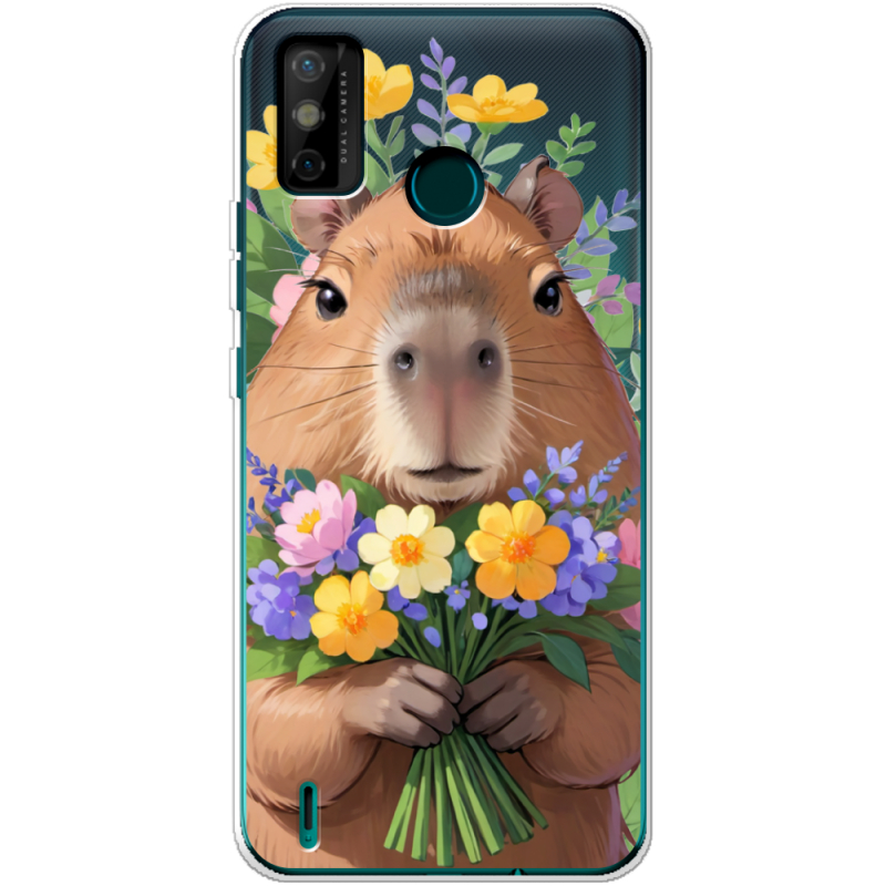 Прозрачный чехол BoxFace Tecno Spark 6 Go Капибара з квітами