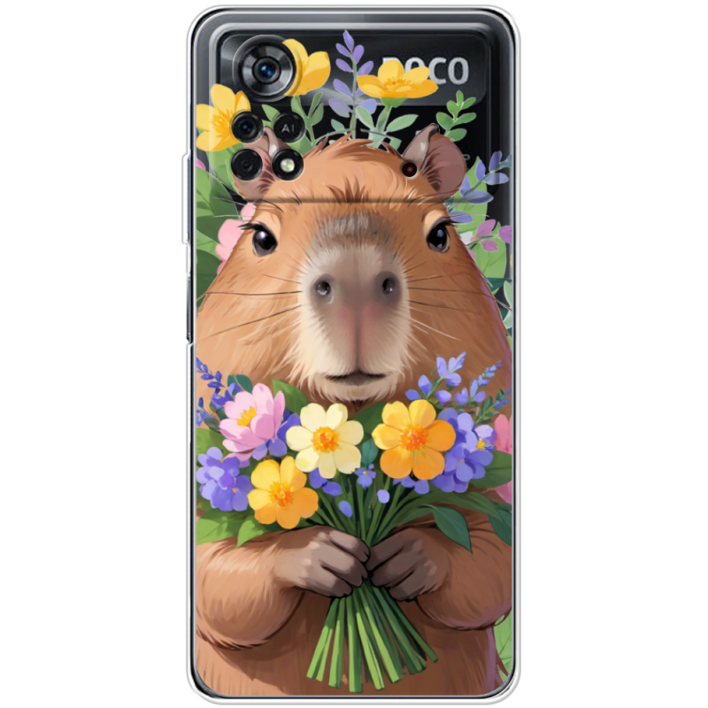 Прозрачный чехол BoxFace Xiaomi Poco X4 Pro 5G Капибара з квітами