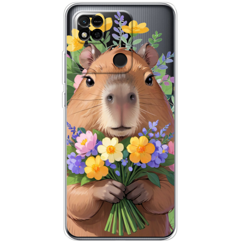 Прозрачный чехол BoxFace Xiaomi Redmi 10A Капибара з квітами