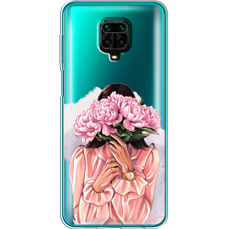 Прозрачный чехол BoxFace Xiaomi Redmi Note 9 Pro / 9 Pro Max Девушка с Пионами