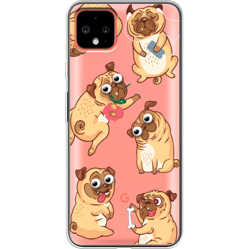 Прозрачный чехол Uprint Google Pixel 4 XL с 3D-глазками Pug