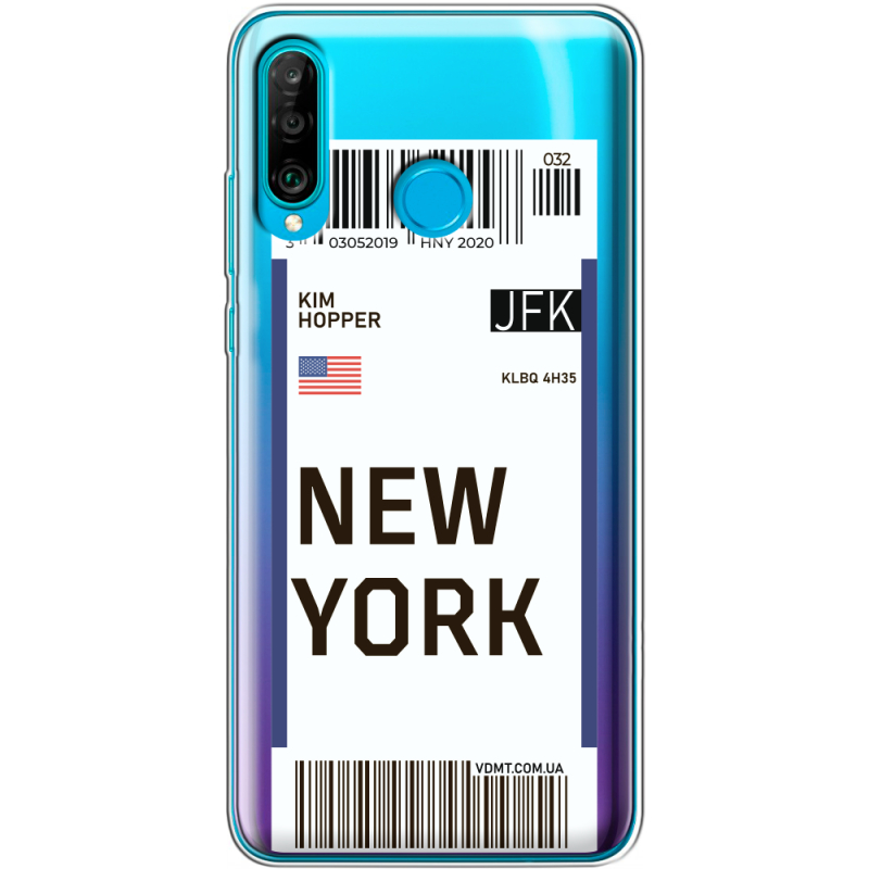 Прозрачный чехол Uprint Huawei P30 Lite Ticket New York