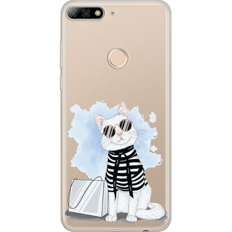 Прозрачный чехол Uprint Huawei Y7 Prime 2018 / Honor 7C Pro Cat Style