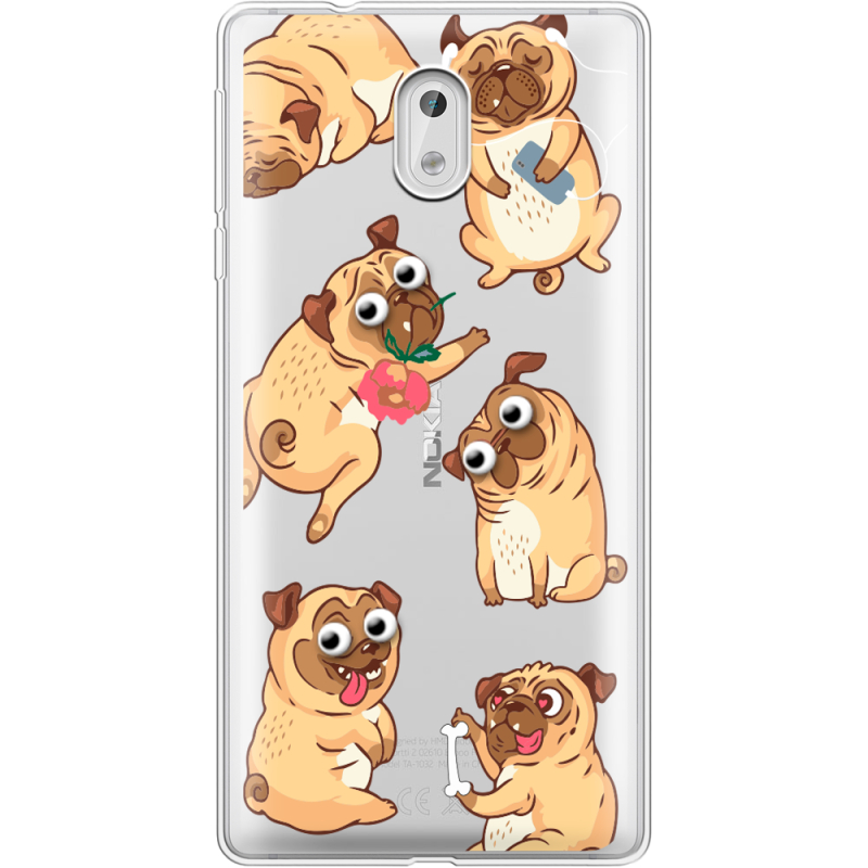 Прозрачный чехол Uprint Nokia 3 с 3D-глазками Pug