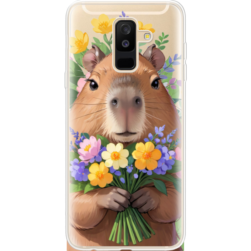 Прозрачный чехол Uprint Samsung A605 Galaxy A6 Plus 2018 Капибара з квітами