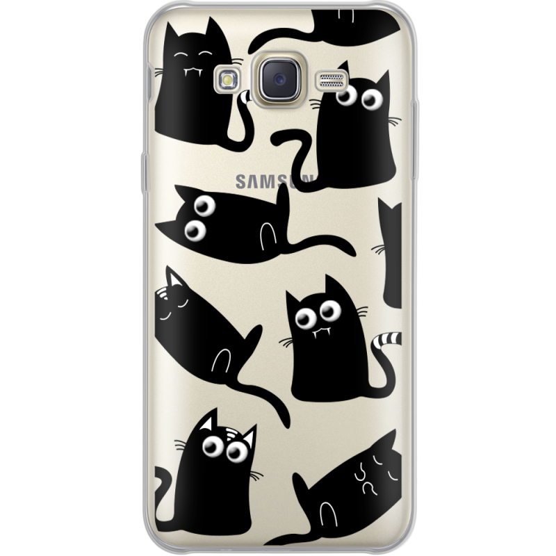 Прозрачный чехол Uprint Samsung J701 Galaxy J7 Neo Duos с 3D-глазками Black Kitty